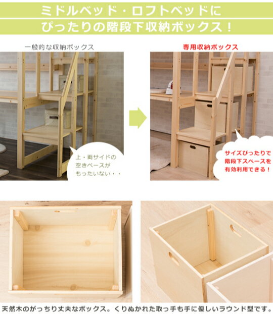 【階段付きミドルベッド・ロフトベッドシリーズ】[階段付きミドルベッド][階段付きロフトベッド][階段・デスク付きロフトベッド][階段下収納ボックス2個セット][階段下収納ボックス3個セット]