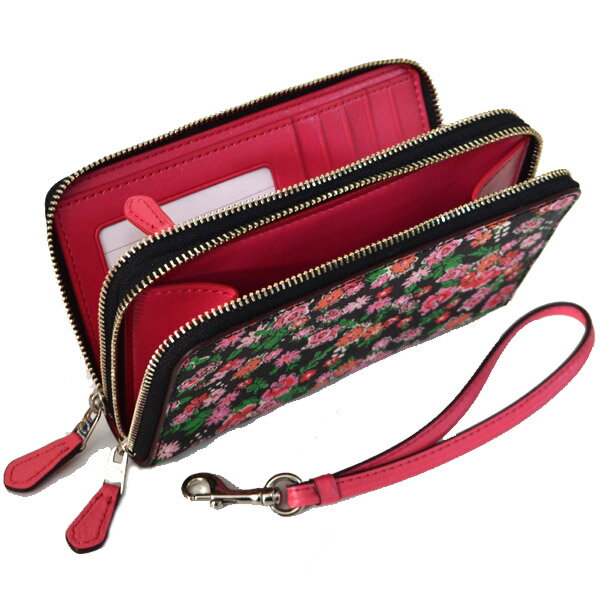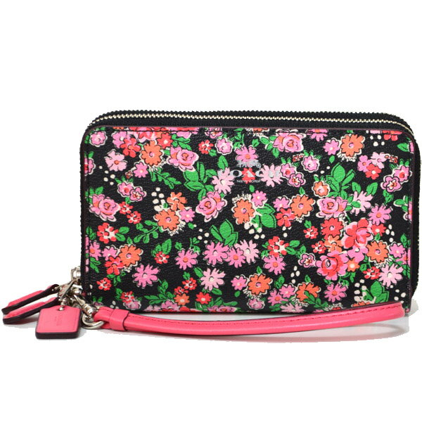 コーチ 財布 COACH コーティング キャンパス ポージークラスター フローラル 花柄 ダブル ジップ フォン リストレット iPhone 財布 ピンクマルチ 57961【ブランド 新品 送料無料 誕生日 プレゼント 正規 人気 レディース 安心 保証 ギフト 】