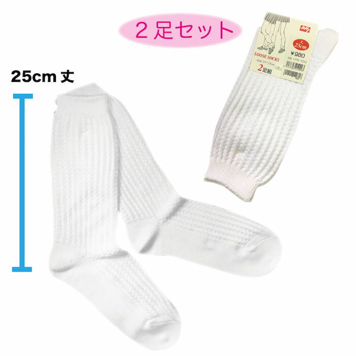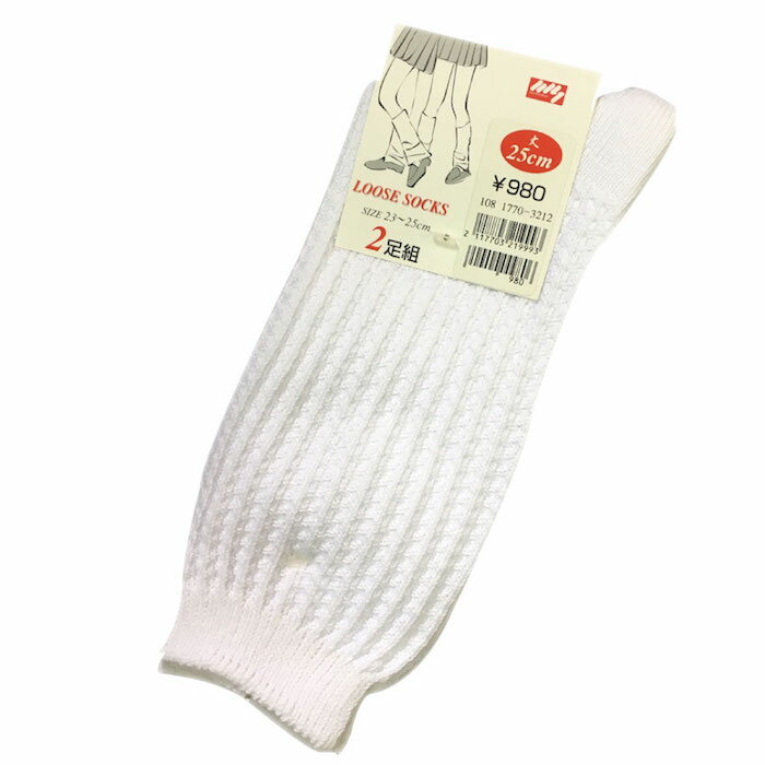 【2足組】25cm リブ編み ルーズソックス スクール制服白 靴下 コスプレ 【メール便送料無料】