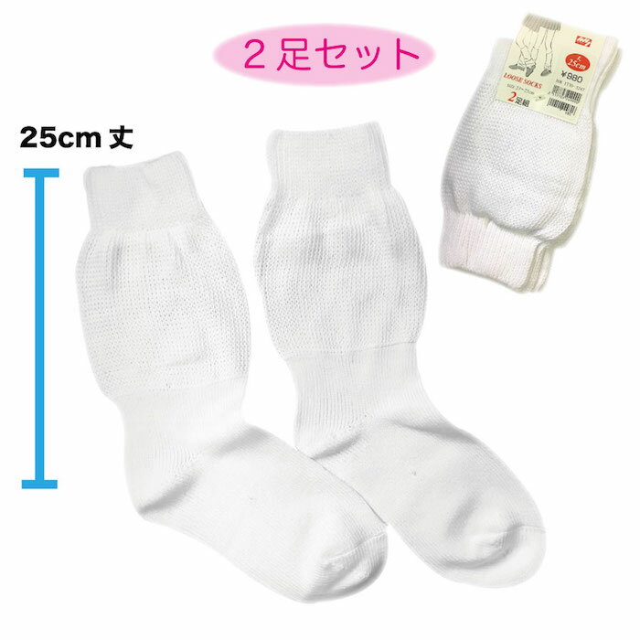 【2足組】25cm ゴム抜き ルーズソックス スクール制服白 靴下 コスプレ 【メール便送料無料】