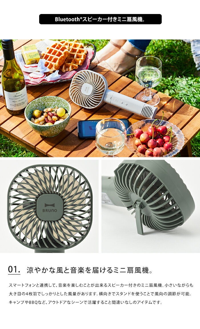 送料無料 BRUNO ポータブルスピーカーライトファン【ブルーノ 扇風機 ミニ コンパクト おしゃれ 小さい モバイルバッテリー ライト 携帯 Bluetooth ブルートゥース 充電式 USB 】バレンタイン
